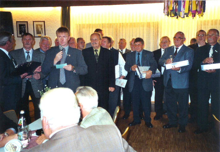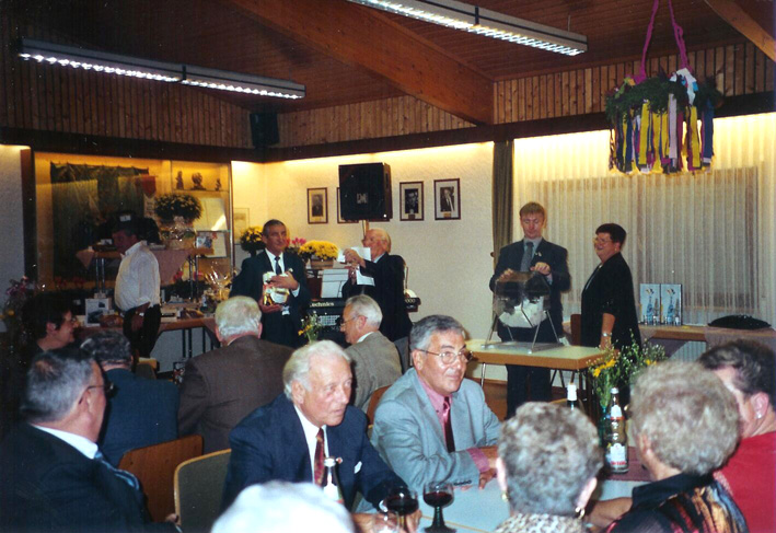 Umrahmt wurde dieser feierliche Akt im Vereinsheim durch den Männerchor, der unter der Leitung seines Vizedirigenten Roland Weinz mehrere Lieder anstimmte.