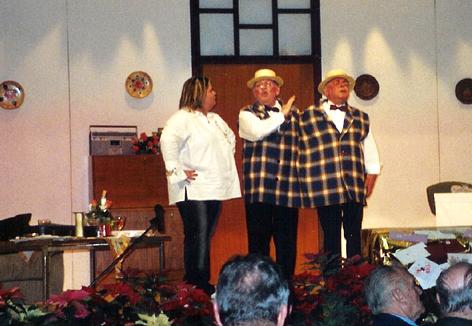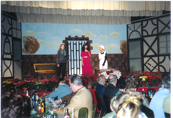 Im weiteren Verlauf standen zwei Bühnenstücke, eines von Kindern und das andere von Erwachsenen gespielt, auf dem Programm. Der Nachwuchs bereitete mit dem Stück "Warum der Schnee nicht fällt" den Auftakt. Durch dieses modernen Märchen wurde das Umweltbewusstsein geschärft. Drei klassische Märchenfiguren, gespielt von Janina Hartmann D'Apuzzo, Franziska Heck und Isabelle Michael leiden in der Geschichte unter der Tatsache, dass der Schnee kurz vor Weihnachten einfach ausgeblieben ist. In ihrer Not wenden sie sich an die "Umweltmonster" (Melanie Rau, Desiree Rau und Nadine Zimmermann), die ihnen die Gründe für die Misere doch bitte aufzeigen mögen. Als Mittlerin zwischen den streitenden Fraktionen tritt eine Meteorologin (Lena Heiser) auf den Plan. Klar, dass die Geschichte ein gutes Ende findet und die Märchengestalten wieder den Glauben an ihr Frohes Fest und die Hoffnung auf Schnee zurückgewinnen.