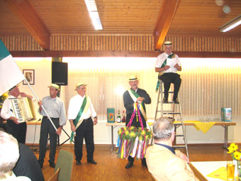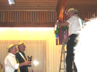 Dann wurde die Kerwerede verlesen und der Kerwekranz aufgehängt.......