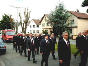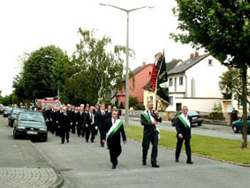 Aufstellung zum Festzug anläßlich des 100jährigen Vereinsjubiläums.