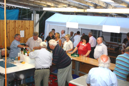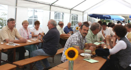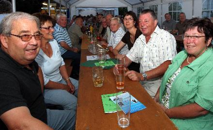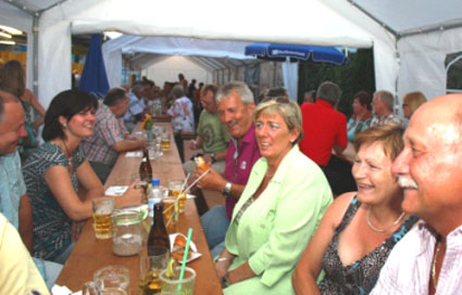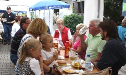 Familienfreundlicher Geheimtipp06.08.2012 - BÜRSTADT MGV 1902 44. Briebelfest Anziehungspunkt in Bürstadt Als fester Termin im Bürstädter Vereinskalender entpuppte sich einmal mehr das Briebelfest am vergangenen Wochenende. Bereits zum 44. Mal feierte der Männergesangverein 1902 sein traditionelles Sommerfest rund um das Vereinsheim in der Waldgartenstraße. Gleich zu Beginn am frühen Samstagabend herrschte viel Betrieb auf der Festmeile. Viele Bürstädter hatten sich mit Nachbarn und Freunden verabredet, um gemeinsam und zumeist per Fahrrad bei den Sängern einzukehren und zusammen zu feiern. An beiden Festtagen spielte das Wetter mit, das in den vergangenen Jahren den MGV 1902 oftmals im Regen stehen ließ, so dass Vereinsvorsitzender Klaus Ohl und seine rund 60 engagierten Helfer alle Hände voll zu tun hatten, um ihre Gäste zu verwöhnen. Egal, ob Hamburger oder Hackbraten am Samstag oder Rollbraten mit Pommes oder Spätzle am Sonntagmittag - die gute Küche bei den „Sangesbrüdern und Schwestern“ ist längst kein Geheimtipp mehr. Insbesondere am Sonntag, nach dem traditionellen Frühschoppen, war schon kurz vor 12 Uhr fast kein Platz mehr zu ergattern. Sowohl im Hof als auch in den verschiedenen Festzelten genossen große und kleine Freunde des Männergesangvereins das vielfältige Essensangebot und die gut gekühlten Getränke zu „familienfreundlichen Preisen“. Unter den zahlreichen Besuchern waren auch heuer wieder zahlreiche Vertreter befreundeter Vereine und viele Kommunalpolitiker mit Stadtverordnetenvorsteherin Bärbel Schader und dem Ersten Stadtrat Walter Wiedemann an der Spitze, die den aufmerksamen Service der der „guten Geister“ des MGV gerne in Anspruch nahmen und sich mit Bratwurst und der traditionellen Briebelschorle - Weißherbst mit Fanta - versorgen ließen. „Früher gab es, gerade unter den Gesangvereinen, oftmals Neid und Eifersüchteleien“, erklärte Klaus Ohl. „Aber heute ist das längst kein Thema mehr. Ganz im Gegenteil, die Sänger hier in Bürstadt sind mittlerweile eng befreundet, helfen sich untereinander aus und arbeiten teilweise sogar eng zusammen“. So war es kein Wunder, dass so manches Lied angestimmt wurde - nicht nur in der Vereinsbar. „Zum letzten Absacker, bei der die ausgelassene Stimmung bei Sekt, Cocktails und hochprozentigen Drinks lange anhielt. Im Keller des Vereinsheims versuchten sich am Samstagabend auch einige Gäste beim Karaoke-Singen. Ob dabei neue Gesangstalente oder gar Nachwuchssänger gefunden werden konnten, ist nicht bekannt. Da auch am Sonntag, der mit Kaffee und einem großen Kuchenbüfett mit selbst gebackenen Leckereien ausklang, der Wind zumeist „günstig“ stand und die Geruchsbelästigung durch den ans Vereinsgelände angrenzenden Mulchplatz halbwegs vertretbar war, konnten Klaus Ohl und sein Stellvertreter Roland Weinz mit einem Lachen im Gesicht zum Ende der beiden Festtage eine erste positive Bilanz ziehen. Alle Erlöse des Briebelfestes gehen in den Vereinsbetrieb, damit in 2013 das 45. Briebelfest gefeiert werden kann. Bürstädter Zeitung, 06.08.2012