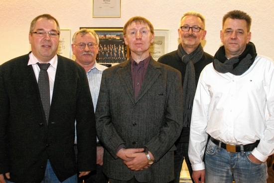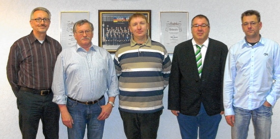 Der Vorstand des Männergesangverein 1902: Roland Weinz, Peter Winkler, Klaus Ohl, Hermann Zimmermann und Thomas Ille (von links). Foto : JKL