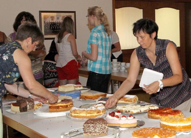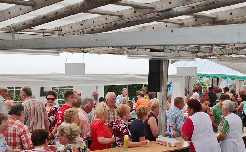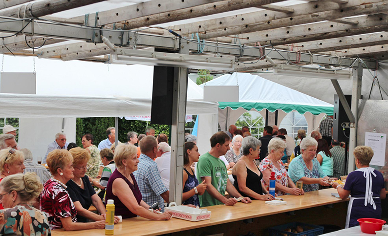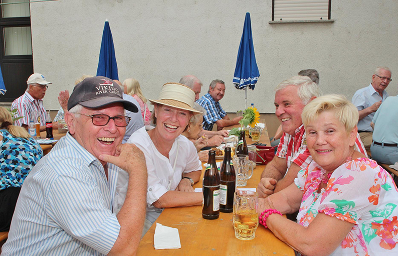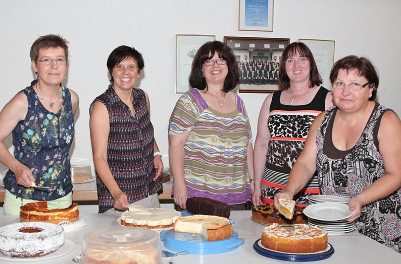 Sein Wunsch sollte in Erfüllung gehen. Bereits gegen 21 Uhr, noch bevor die Cocktailparty „Zum letzten Absacker“ ihre Pforten öffnete, waren alle Bänke rund ums Vereinsgelände voll besetzt und mehr als 500 Partyfans ließen sich vom kulinarischen Angebot der Sängerküche verwöhnen. Dass „aus organisatorischen Gründen“ Selbstbedienung angesagt war, tat der guten Laune keinen Abbruch. Auch bei den Getränkeangeboten haben die MGVler immer etwas Besonderes zu bieten. Neben frisch gezapftem Fassbier, dem mittlerweile in unseren Breitengraden immer beliebteren Weizenbier sowie zahlreichen antialkoholischen Durstlöschern kredenzen die Sänger seit vielen Jahren ihre „Briebelschorle“, ein extrem erfrischender Mix aus Weißwein und Fanta, der auch heuer wieder riesigen Absatz fand. Wen es eher zu einem exotischen Cocktail, einem guten Glas Winzersekt oder auch einem hochprozentigen „Stimmungssteigerer“ hinzog, der war am Samstag und Sonntag in der Vereinsbar genau richtig. Caipirinha, Aperol-Spritz oder auch ein Hugo wurden im Akkord gemixt und steigerten, gemeinsam mit viel guter Musik vom hauseigenen DJ, die gute Stimmung bis in die frühen Morgenstunden des zweiten Festtages. Am Sonntag startete das Fest, 45 Jahre nach seiner Premiere im Jahr 1968 auf dem Briebel mit dem traditionellen Frühschoppen, bei dem viele Vertreter befreundeter Vereine den Sängern des MGV 1902 mit ihren beiden Vorsitzenden Klaus Ohl und Roland Weinz an der Spitze ihre Aufwartung machten und auch zahlreiche Vertreter der örtlichen Lokalpolitik mit ihrem Besuch die „Arbeit und den großen Aufwand der vielen ehrenamtlichen Helfer“ würdigten. Bereits zur frühen Mittagessenszeit herrschte in der „Feldküche“ der Sangesfreunde wieder Hochbetrieb. Lange Schlangen bildeten sich an der Essensausgabe und zeigte einmal mehr, wie beliebt das hausgemachte Speiseangbot bei Groß und Klein ist. Zahlreiche Familien hatten sich mit Kind und Kegel zum MGV 1902 aufgemacht – ließen ihre heimische Küche kalt – und genossen stattdessen die Grillspezialitäten. Auch die große Kuchentheke, bestückt mit mehr als 30 selbst gebackenen Spezialitäten, fand zur frühen Kaffeestunde so viele Liebhaber und Abnehmer, dass das Angebot süßer Leckereien schnell knapp wurde.