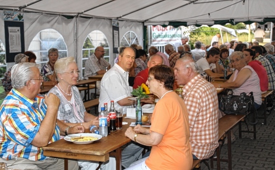 Bürstädter Zeitung, 09.07.2012 Wetter und Stimmung passen09.07.2012 - BÜRSTADT GRILLFESTE IG Wanderfreunde und MGV 1902 verbringen fröhliche Stunden (wolf). Das richtige Wochenende hatten sich die Vereine für ihre Grillfeste ausgesucht, die am Samstag und Sonntag ihre Mitglieder, Freunde und Gönner zum Grillen und gemütlichen Beisammensein einluden. Mit der Unterstützung von Petrus - mit viel Sonnenschein und bei angenehmen, fast hochsommerlichen Temperaturen - wurde bis in die späten Abendstunden hinein sowohl im Radfahrerheim als auch in der Waldgartenstraße nach Herzenslust gebrutzelt und gefeiert. Einen besonderen Anlass zum Fröhlichsein hatten die Mitglieder der IG Wanderfreunde, die sich schon am Samstagnachmittag zum Sektempfang anlässlich ihres 30-jährigen Bestehens trafen. „Im Sommer 1982 habe ich gemeinsam mit Maria Göpfrich und Katharina und Erich Keinz unsere Interessengemeinschaft gegründet“, verriet Dieter Siebel, der Erste Vorsitzende der Kletter- und Wanderfreunde mit Stolz. Mit Kaffee und Kuchen und später mit vielen Grillspezialitäten und hausgemachten Salaten wurde das runde Jubiläum in den Räumlichkeiten des RV 03 Bürstadt zelebriert. Mehr als 50 Mitglieder und Freunde der organisierten Wanderer und Hochalpinisten, die auch im Alter von über 70 Jahren noch regelmäßig zu Touren ins Hochgebirge aufbrechen, ließen es sich innerhalb ihres „Vereins“ gut gehen und tauschten viele Erinnerungen an gemeinsame Urlaubsaktivitäten aus. „Wir haben zwar einen hohen Altersdurchschnitt von sicher jenseits der 65 Lenze, aber es ist schön, dass gerade in jüngster Vergangenheit auch wieder einige junge Frauen und Männer unserer IG beigetreten sind und sich aktiv ins Vereinsgeschehen einbringen“, erzählte der Vereinschef und Gründungsvater am Rande der Feierlichkeiten. Siebel will die übrigen Gründungsmitglieder und langjährige Mitglieder und Unterstützer im Rahmen der im Herbst stattfindenden Generalversammlung besonders auszeichnen und für ihre langjährige Treue belohnen. Beim Vereinsfest des Männergesangvereins 1902 (MGV) stand der Boss höchstpersönlich am Grill. Der Erste Vorsitzende Klaus Ohl brutzelte mit großem Engagement und „im Schweiße seines Angesichts“ unzählige Steaks, Bratwürste und Bauchlappen für seine Mitglieder und deren Freunde. „Unser alljährliches, internes Grillfest feiern wir schon seit mehr als 20 Jahren immer im Juli“, verriet Thomas Ille, der gemeinsam mit Hermann Zimmermann als Schriftführer des MGV 1902 die Grillfeste rund ums Vereinsheim in der Waldgartenstraße mitorganisiert hatte. „Dieser Tag ist ein fester Bestandteil unseres Vereinskalenders und gute Tradition.“ Bei Steaks, Pommes und jeder Menge von den Mitgliedern mitgebrachten Salatspezialitäten wurde ausgiebig über viele Vereinsinterna und Geschichten rund um den Verein geplaudert, es wurde viel gelacht und zu späterer Stunde sogar gesungen. Die rund 80 Gäste feierten im Hof des Sängerheims ein gelungenes Fest. Dabei drehten sich auch viele Gespräche um das in Kürze bevorstehende Briebelfest des Vereins im August. Am 5. und 6. August laden die Sänger des MGV 1902 die Bevölkerung zum gemeinsamen Feiern mit „Briebelschorle und guter Laune“ ein.