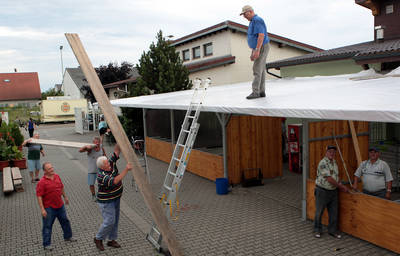 (wolf). „Hoffentlich hält das Wetter und es bleibt so warm.“ So lautet der derzeit meist geäußerte Wunsch der vielen ehrenamtlichen Helfer des Männergesangvereins 1902, die mitten in den Aufbauarbeiten für das kommende Sommerfest stehen.