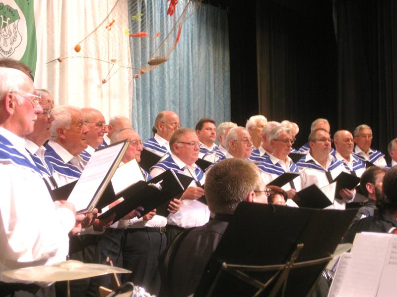 Auf ungewisser Reise26.04.2010 02:00 Uhr - BÜRSTADT Von Sabine Weidner KONZERT MGV 1902 bietet mit Akkordeonclub und Solisten Seemannslieder dar Einen musikalischen Anker lichtete der Männergesangverein 1902 Bürstadt am Samstagabend. Die 37 Sänger nahmen gemeinsam mit dem Akkordeonclub Blau-Weiß Bensheim und Solist Johannes M. Kösters die knapp 400 Gäste mit auf eine Reise. Unter der musikalischen Gesamtleitung von Musikdirektor Helmut Vorschütz erklangen der volle Bass des Solisten, die kraftvollen Männerstimmen und die Instrumente der Akkordeonspieler, die mit vielen Beiträgen ihr Können demonstrierten. Die Bühne bot - in wallende blaugrüne und weiße Tücher gehüllt - den wasserähnlichen Rahmen für eine außergewöhnliche Liedauswahl, die mit den Akkordeonspielern und Auszügen aus der "Wassermusik" von Georg Friedrich Händel begann. Mit der Ode an den Takt der Uhr, der zum Lebenstakt wird, verzückte Johannes M. Kösters zum ersten Mal mit seiner Bassstimme. Von Priestern im Kloster Grabow, die immer nur einen Fisch fingen, dann jedoch einmal zwei aus dem Wasser holten und damit ihr Unheil einläuteten, sang der Chor - worauf Kösters mit einem "Trinklied" animierte. "Ich brauche ihre Unterstützung", forderte er zum Mitsingen auf. Text sowie Melodie saßen, worauf das vierstrophige Lied erklang und mit dem Applaus der Gastsänger abschloss. Steigende Dynamik zeichnete die "Dalmatinischen Tänze" aus, die per Akkordeonspiel zum Summen anregten. Kurz vor der Pause sang man von schönen Mädchen, dem Abendfrieden, vom Rio Grande und letztendlich davon, dass die Heimat des Seemanns das Meer ist. Mit Matrosenkragen über den weißen Hemden wechselte die Optik der Sänger im zweiten Konzertteil von den eher gediegenen dunklen Anzügen im ersten Part zu maritimem Look. Unter den aufgespannten Fischernetzen, in denen sich Hummer, Muscheln und Fische verfangen hatten, erschallten nun Stücke, die Sehnsucht nach fernen Ländern und ungewissen Reisen hervorriefen: "Schwer an Schätzen", "Aloa-he" und "My Bonnie" ließen die Gedanken in ferne Länder schweifen - Letzteres von Kösters mit Gänsehautschauer verursachender Stimmgewalt und Gefühl interpretiert. Der Seemannsklassiker "Rolling Home" folgte mit ebensolcher Wirkung der tiefen Stimme. Instrumental entführte der Akkordeonclub mit einem Medley aus "My fair Lady"- Musical-Melodien nach London. In die Ukraine lockte es den Solisten Kösters mit dem Lied "Wenn ich einmal reich wär" aus dem Musical Anatevka. Deftige Seefahrerlieder mit Bewegung auf der Bühne und im Publikum beschlossen eine musikalische Reise mit vielen Anlegeorten. Deren Besonderheit - interpretiert durch typische Tanzweisen -, einige zünftige Seemannslieder und die beeindruckende Stimme und Interpretationsweise des Solisten bleiben den Zuhörern wohl noch lange im Ohr. Als Zugabe trat noch einmal Johannes M. Kösters zu den Sängern und Musikern auf die Bühne und ließ seinen Bass erneut erklingen. Begeisterter Applaus zeigte, dass Programm und Darbietung den Gästen gefallen hatten. Ursprünglich sollte das Konzert bereits im vergangenen Jahr stattfinden, wegen des unerwarteten Todes des Zweiten Vereinsvorsitzenden Jürgen Paul wurde es damals abgesagt. Im Februar 2010 begann man erneut mit intensiven Proben, die jetzt zum Konzertgenuss führten.