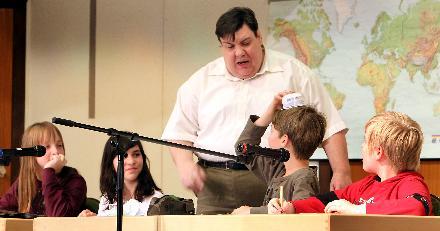 Die Kinder des MGV 1902 sorgten mit ihrem Theaterstück „Herr Besserwisser und die vier Schlaumeier“ für viele Lacher und lang anhaltenden Applaus. Foto: AfP Asel